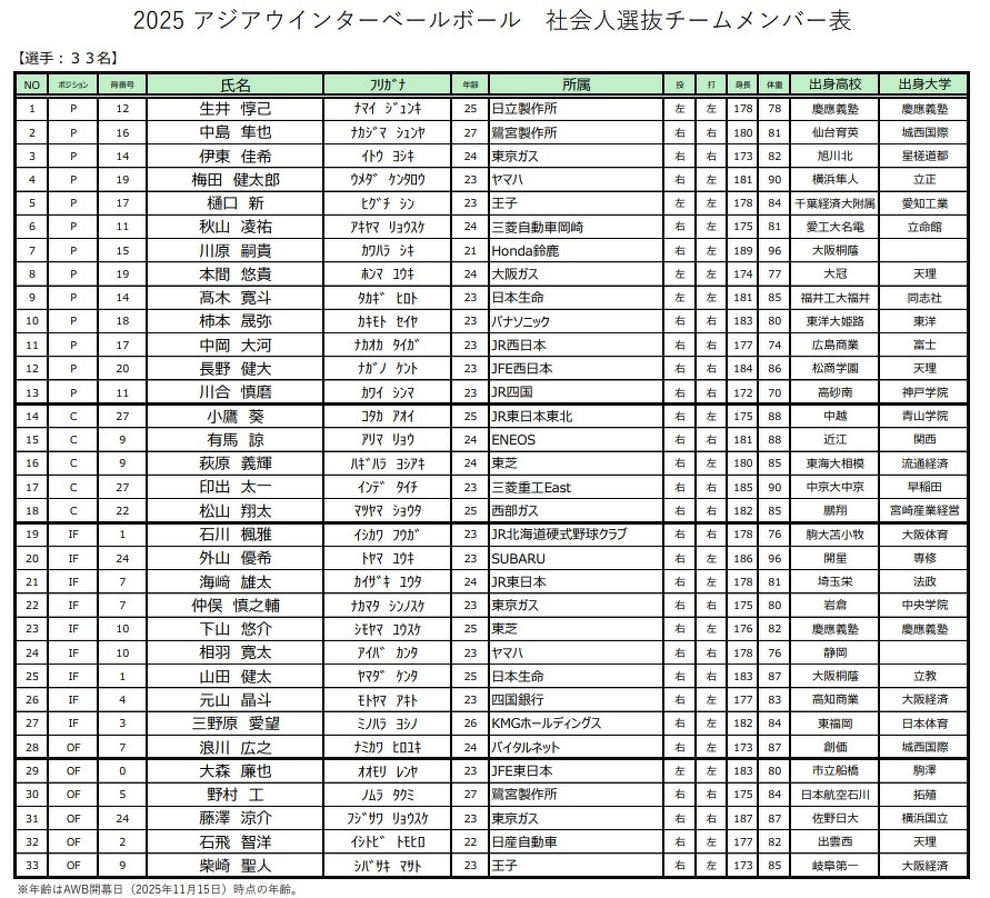 弊部所属の大森廉也 が、台湾プロ野球連盟(CPBL)主催の「2025アジアウインターベースボールリーグ(AWB)」のJABA選抜メンバーに選出されました!