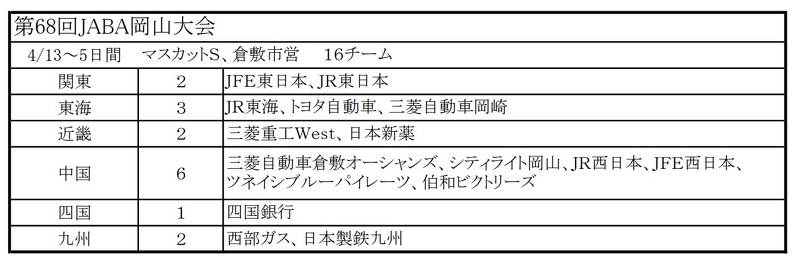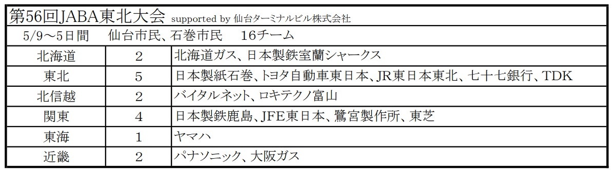 2026年度JABA各地区連盟主催大会における出場チーム一覧が公開されました!