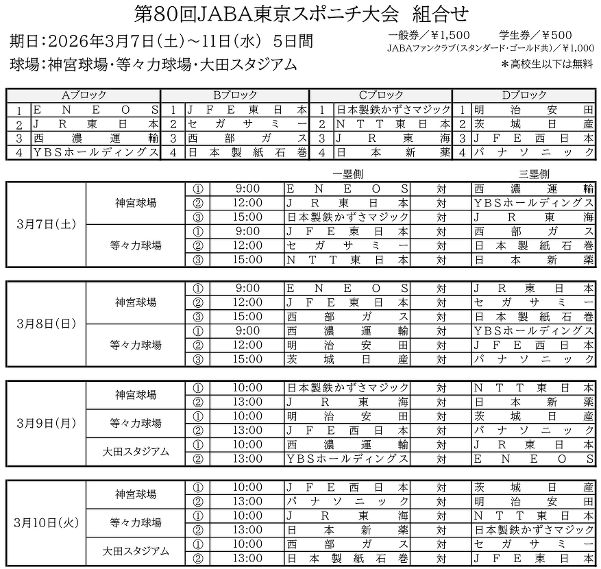 第80回JABA東京スポニチ大会の組み合わせが決まりました!