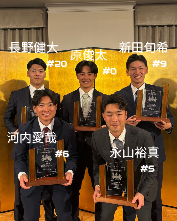 1月28日に広島県野球連盟R7年度優秀選手の表彰式がありました。 弊部からは下記5名が受賞しました! ⚾長野健大 ⚾原俊太 ⚾新田旬希 ⚾河内愛哉 ⚾永山裕真 今シーズンの活躍も期待しています!!! みなさま、引き続き熱いご声援をよろしくお願いします!
